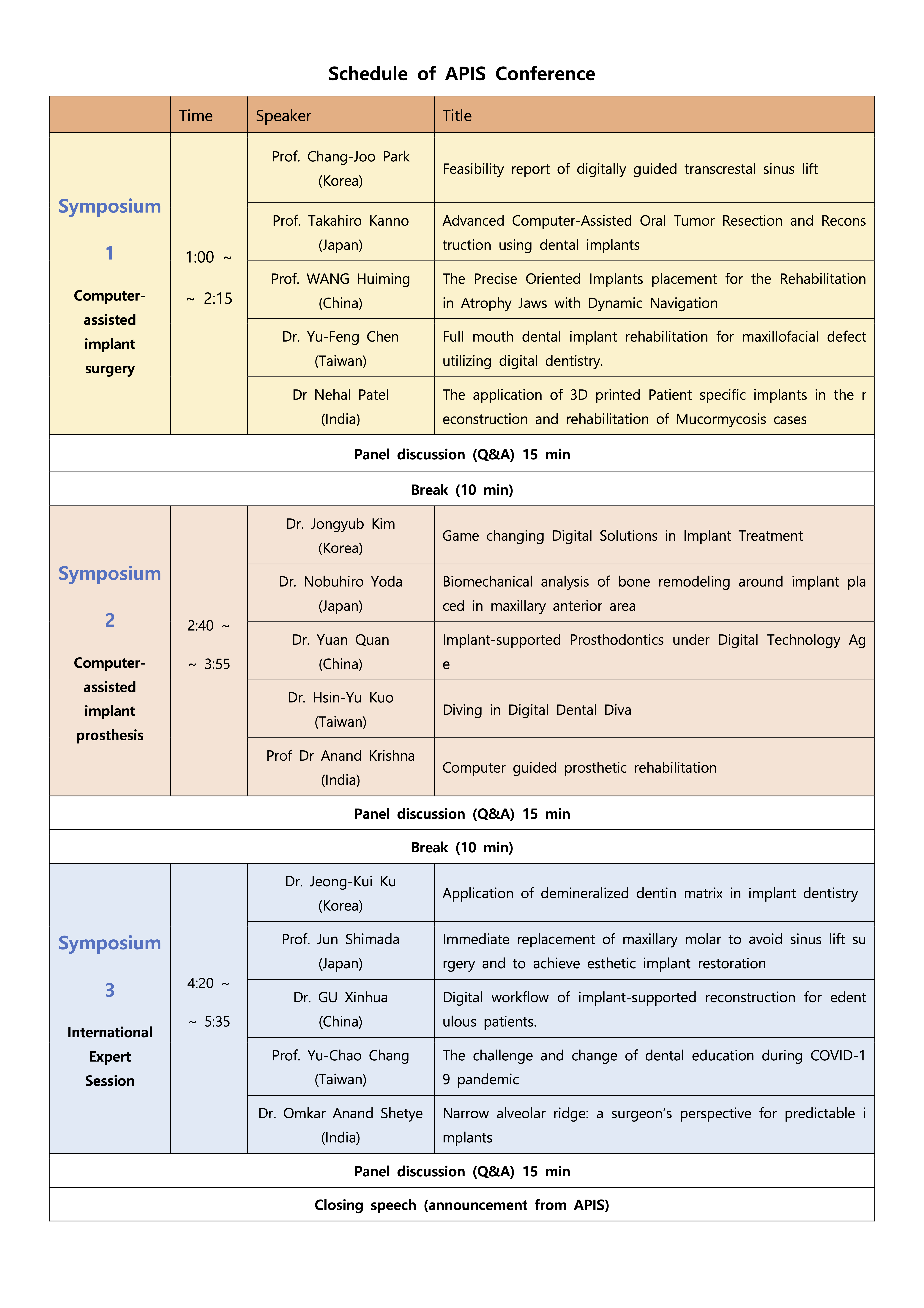 Symposium 3 (16:20~17:35) APIS international Expert Session