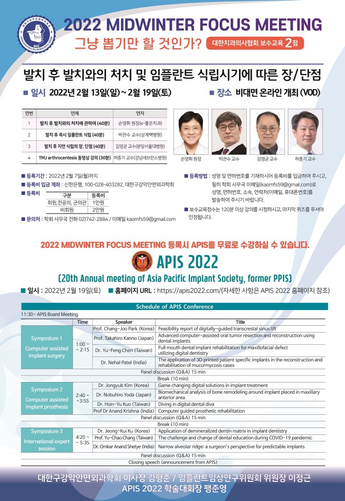 | Young-Kyun Kim | Dept. of Oral & Maxillofacial Surgery, Seoul National University Bundang Hospital | Extraction and delayed implant placement | ||